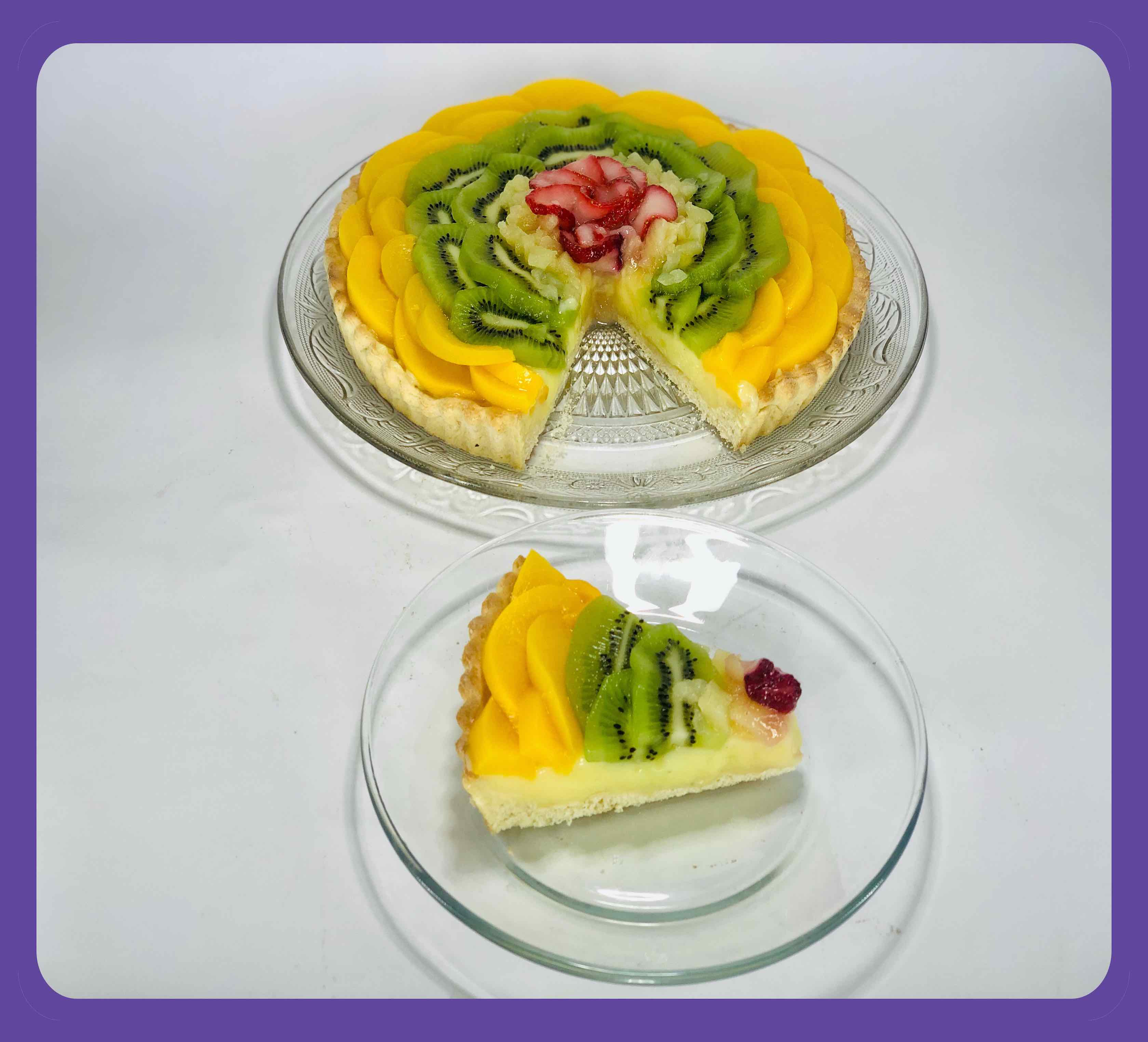 Delicioso postre fresco a base de un esponjoso relleno de queso crema, pulpa y chantilly, sobre una capa de galletas y decorado según eleccion.